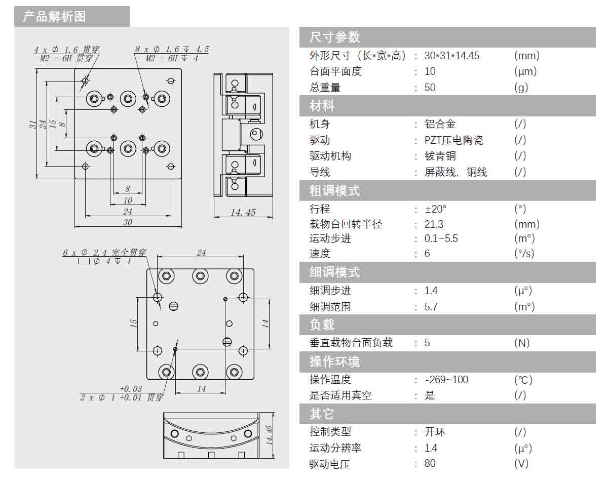 壓電旋轉台-RA-3402A 操作溫度-269-100℃,垂直載物台麵負載5N,適用真空。
