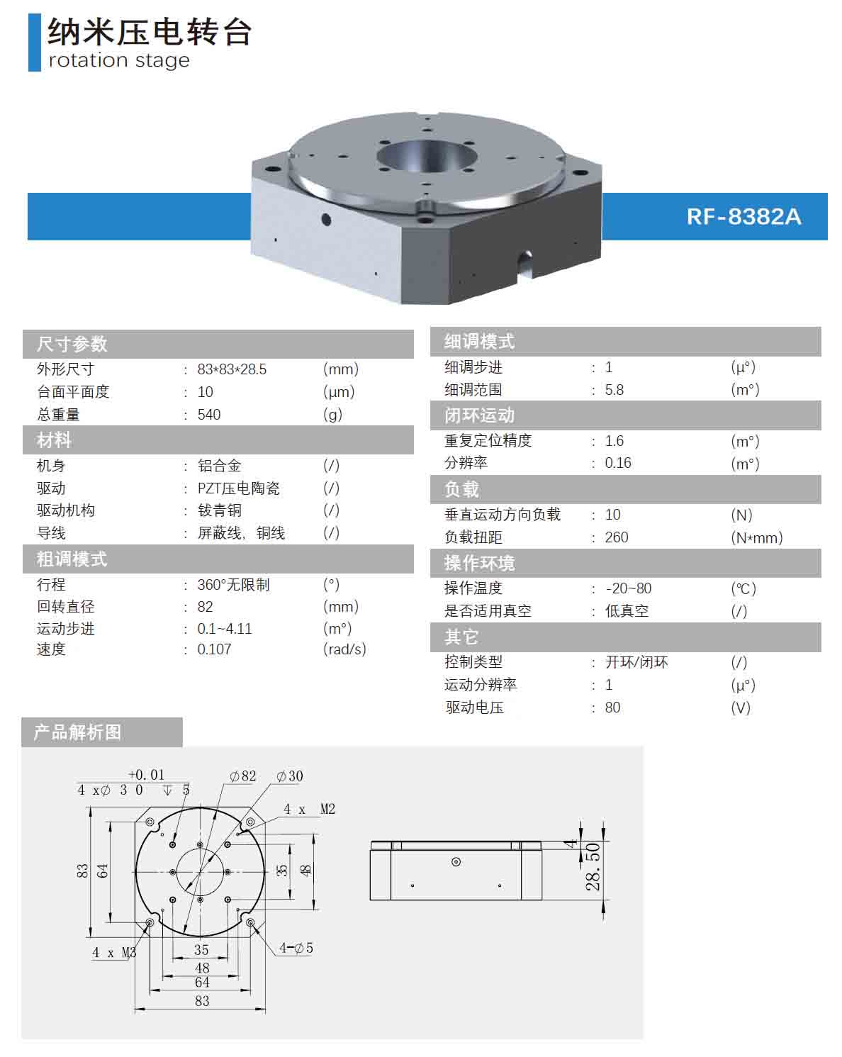 壓電旋轉納米位移台RF-8382A技術參數